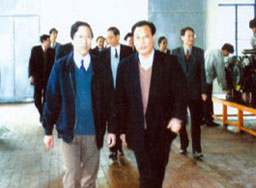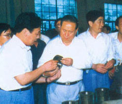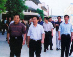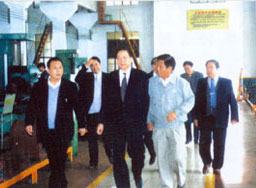 | 梁省長(前左一)在董事長陪同下視察企業(yè) | 原副省長俞興德到生產車間視察工作 |